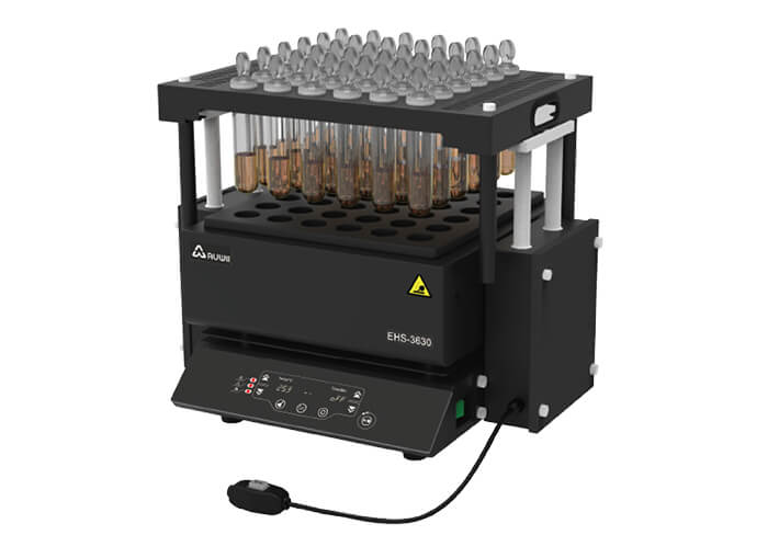 EH 系列防腐型石墨消解儀是一款適合在高濃度酸霧環境中進行樣品消解的樣品前處理設備,可以支持多達60個樣品的同時處理,充分滿足批量樣品處理需求。階梯程序控溫,自動完成消解、趕酸工作步驟,最大程度減少實驗人員與酸氣接觸。